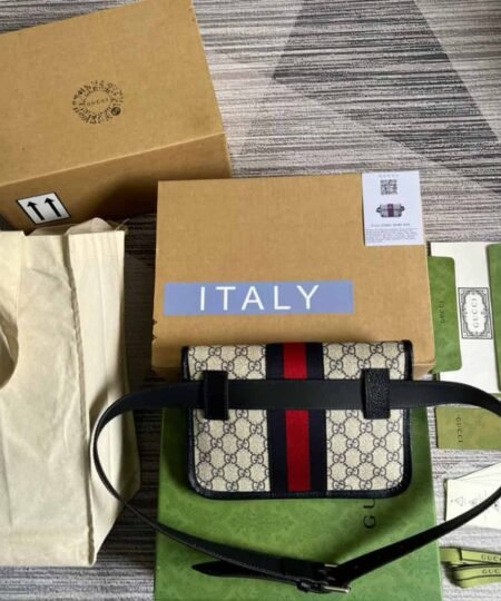 Gucci Ophidia Belt Bag Beige And Blue GG Supreme Canvas For Men? 8.7in/22cm GG 674081 96IWN 4076