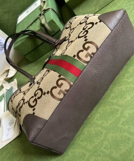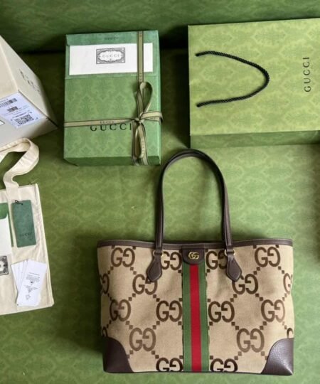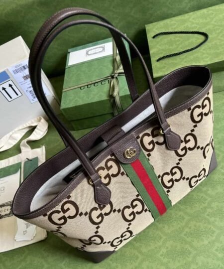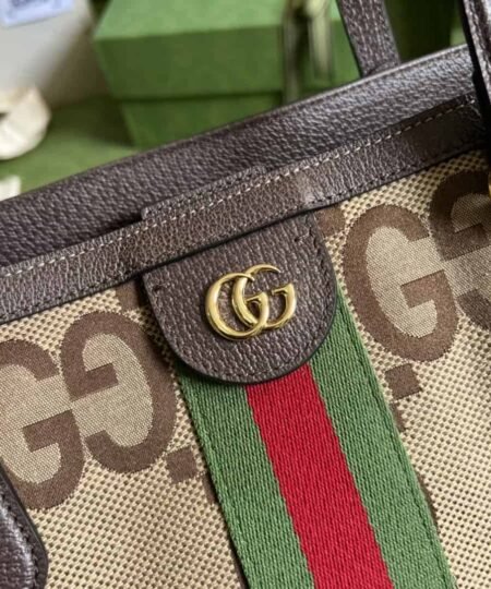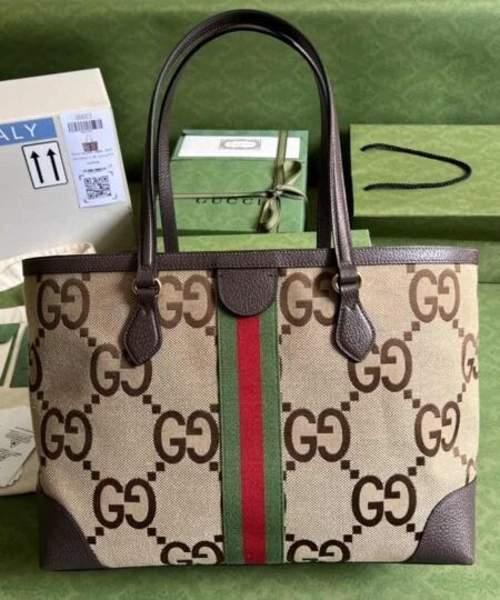 Gucci Ophidia Jumbo GG Medium Tote Camel And Ebony Jumbo Canvas For Women 15in/38cm 631685 UKMDG 2570