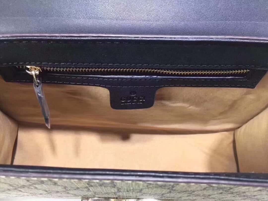 A structured GG Supreme canvas bag with a top and our key lock closure. The sliding chain strap can be worn multiple ways, changing between a shoulder and a top handle bag.