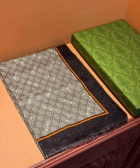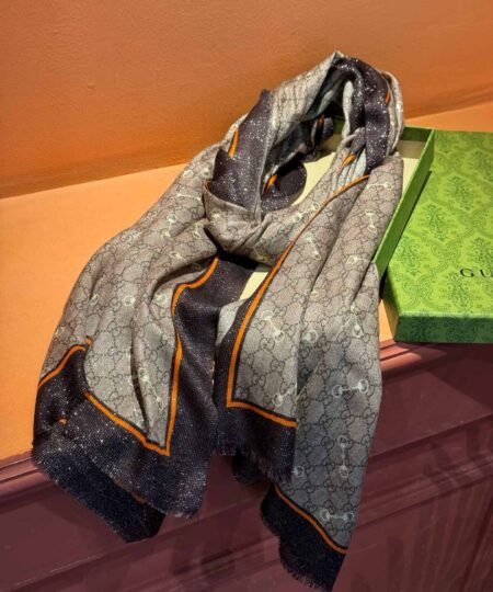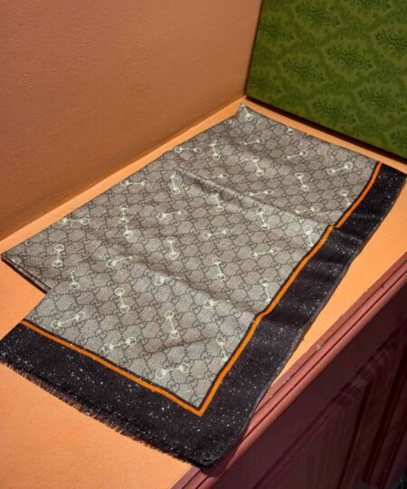 Gucci Saddle Silver Ribbon Scarf Brown 200cm/79in For Women