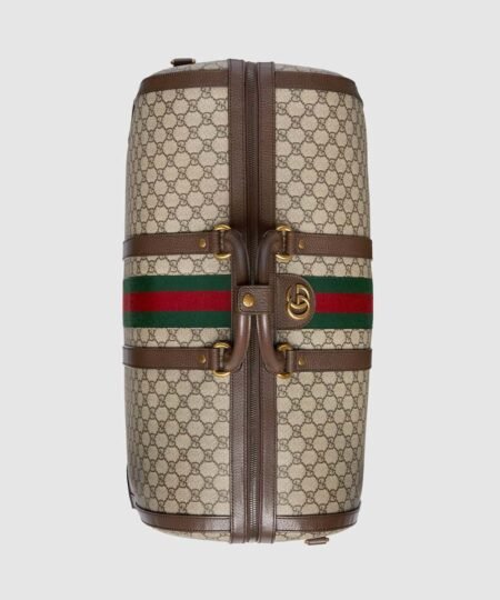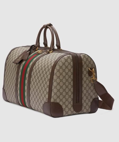 - Inspired by the summer spirit and beach clubs on the Italian coast, this item is part of Gucci Lido. Introduced within the Gucci Savoy line, this duffle bag is crafted from beige and ebony GG Supreme canvas combined with the distinctive combination of the House Web with Double G hardware. The top-handle shape is also equipped with an adjustable canvas strap so it can be worn on the shoulder. A secure zipper closure completes the silhouette.