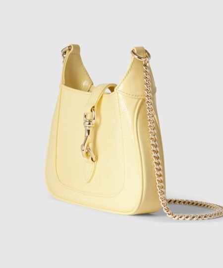 - Inspired by the summer spirit and beach clubs on the Italian coast, this item is part of Gucci Lido. The Jackie Notte is a new handbag designed for Gucci by Creative Director Sabato De Sarno. It embodies the self-confidence of the iconic Jackie line, with a new silhouette and subtle details that make it perfect for day to night wear. Light yellow patent, a hook closure, and light gold-toned Gucci lettering chain strap give this mini shoulder bag a unique touch
