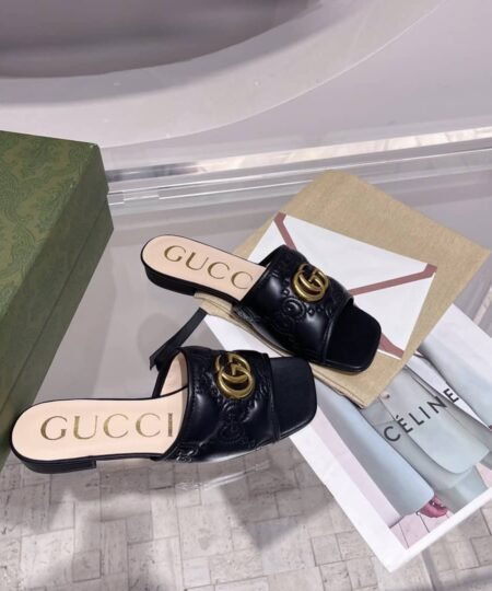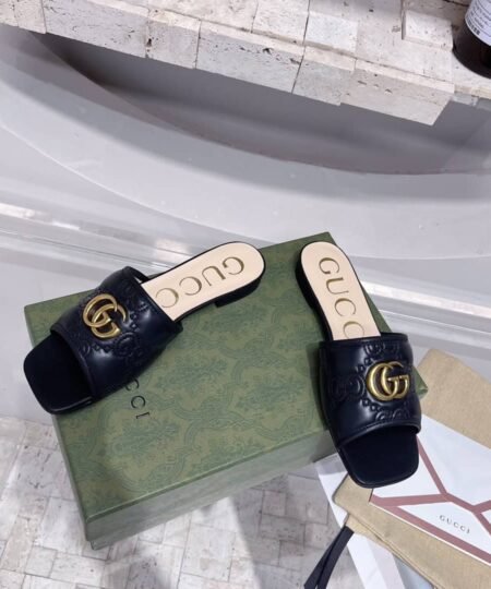 Gucci Women’s Slide Sandal With Double G Black For Women GG