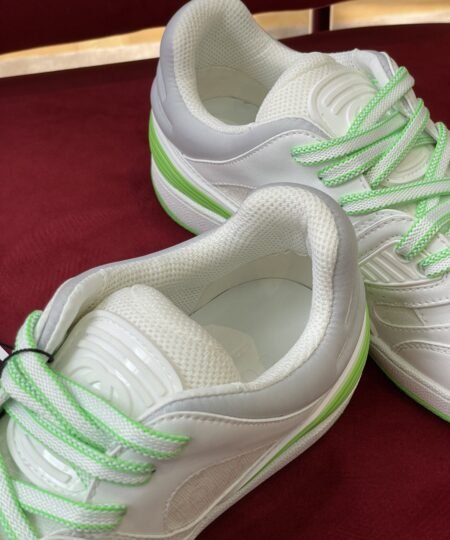 Sporting a look synonymous with basketball sneakers from the ‘90s, the House introduces the newest rendition of the lace-up sneaker—Gucci Basket. This low top style emulates the self-expression of on-court aesthetic with distinctive features and detailing. Presented in grey with green accents and finished with a lightly distressed effect, each pair is crafted primarily from Demetra. Created with the same processes used for tanning, the new material offers pliable and resilient performance with a supple finish. The eco-friendly material combines animal-free raw materials primarily from sustainable, renewable, and bio-based sources.