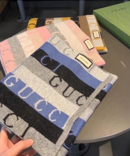 Gucci Wool Multicolor Line in Grey and Blue Scarf 150cm/71in