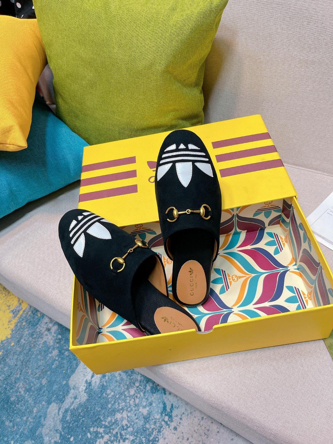 Gucci x Adidas Women’s GG Trefoil Slipper Black For Women GG