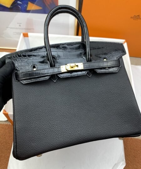 Hermes Birkin Nata Swift Black For Women Gold Toned Hardware 10in/25cm