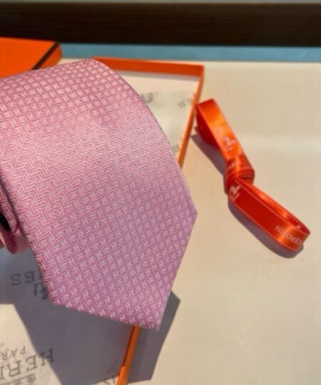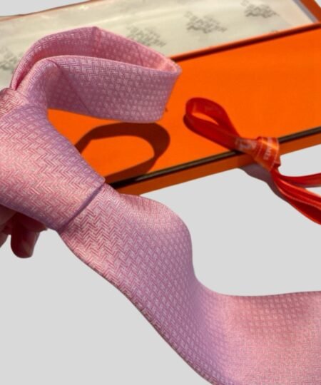 It features a subtle herringbone weave that enriches the fabric with depth and sophistication. The soft pink hue adds a modern yet graceful touch, making it the perfect accessory for both formal occasions and distinguished everyday wear.