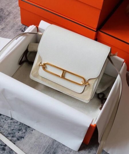 Hermes Evercolor Sac Roulis 23 White For Women, Women’s Handbags, Shoulder Bags 9in/23cm