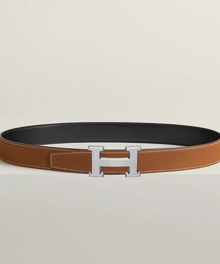 Hermes H Guillochee Belt 32mm Buckle And Reversible Leather Strap Noir – H064540CC06