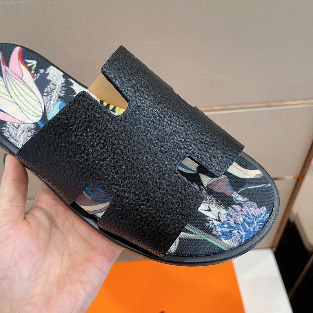 Hermes Izmir Sandal Black And Multicolor For Men
