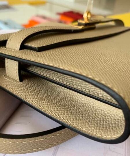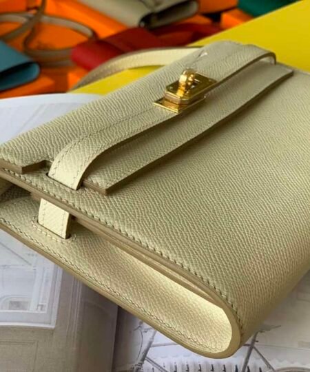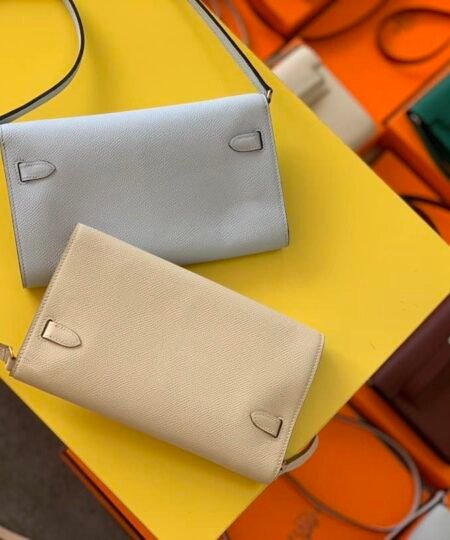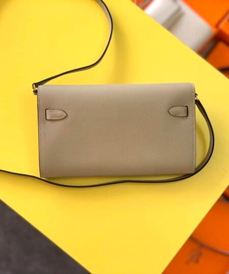 Hermes Kelly Classique To Go Wallet 21cm/8.3in Gold Toned Hardware For Women Cream