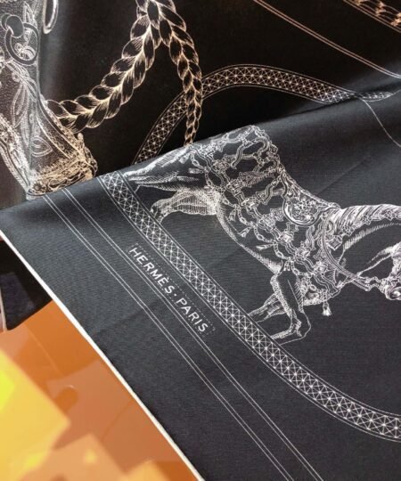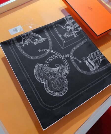 Hermes Les Parfums Monochrome Silk Scarf Black For Women