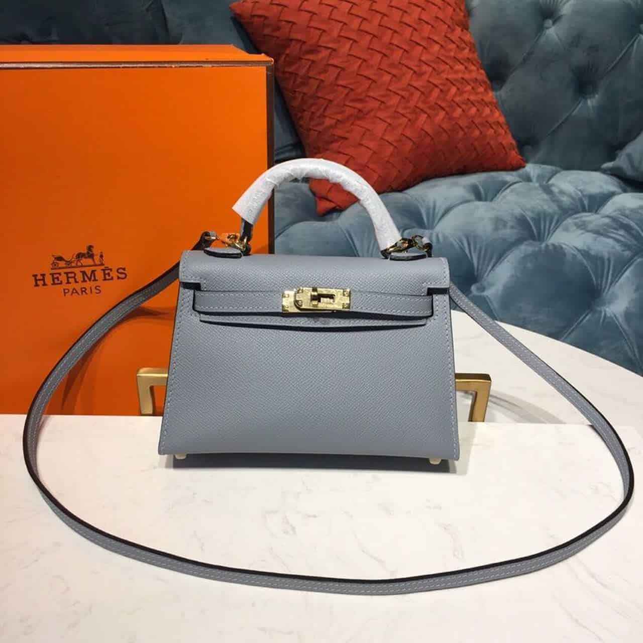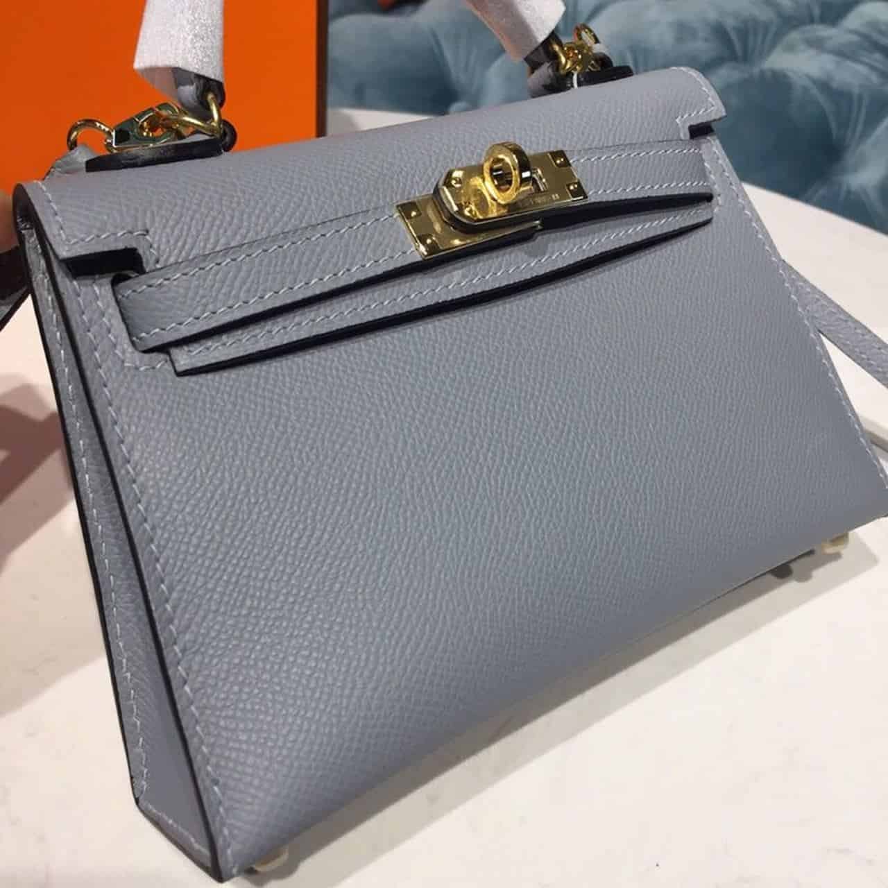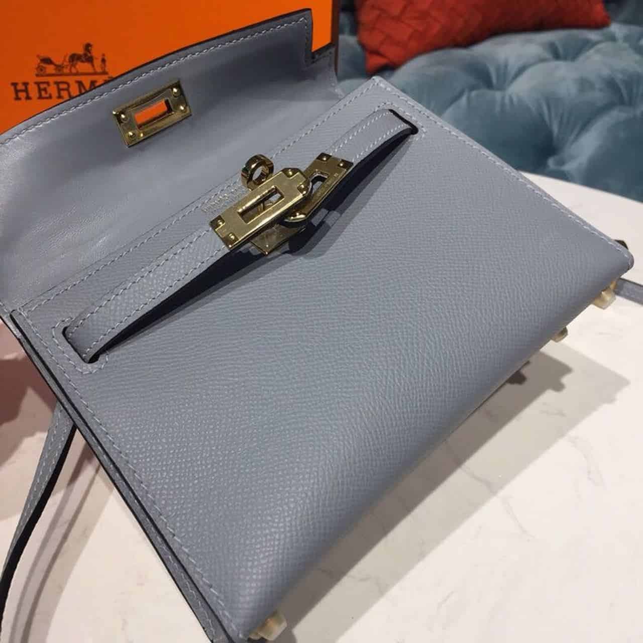 Hermes Mini Kelly Light Blue For Women Gold Toned Hardware 7.5in/19cm