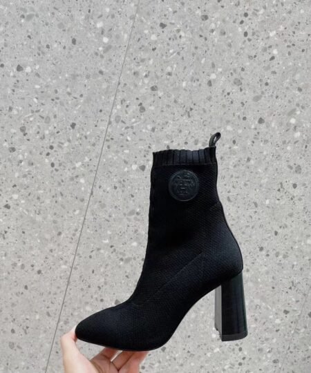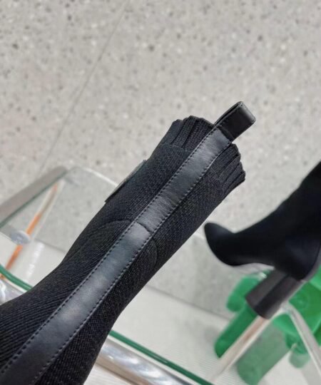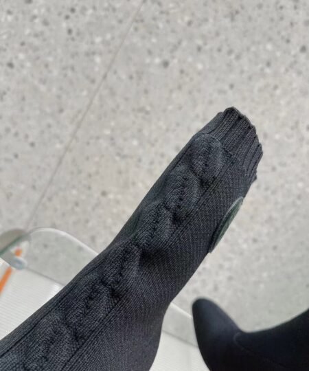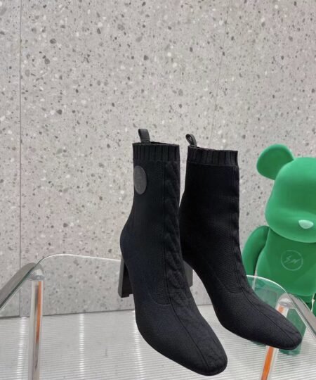 Ankle boot in knit with “Clic! C’est Noue” motif, “Ex-Libris” motif and horseshoe-shaped heel,