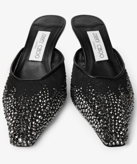 Jimmy Choo Vivi 65 Crystal Mesh Mules Black – VIVI65NYT