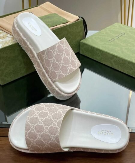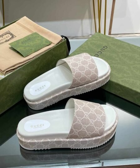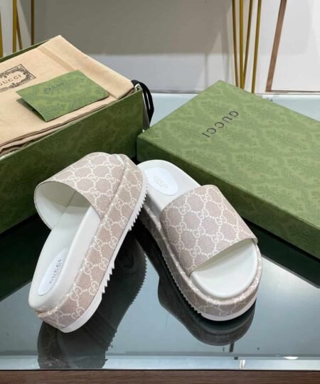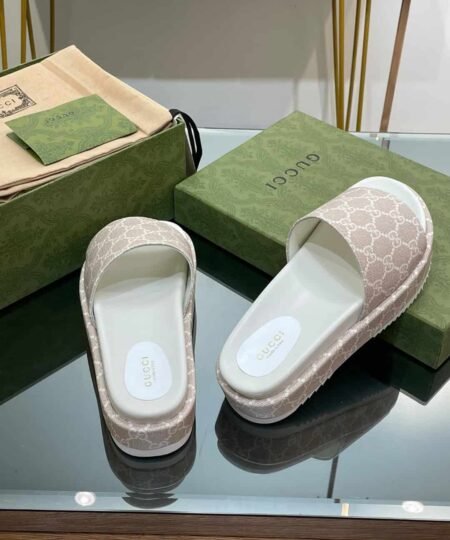 Gucci Jumbo Gg Platform Slide Sandal Beige