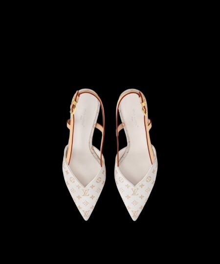 The Allure slingback pump is an elegant style combining Mini Monogram textile with the House’s emblematic natural leather. This model has a pointed toe and a distinctive V-shaped front, which are balanced by a straight, mid-height heel. The back strap is adjusted with a gold-toned LV Initials buckle.
