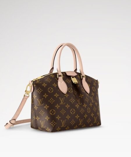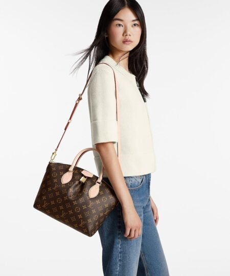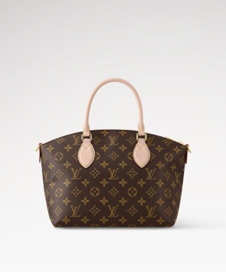 The Boétie PM zipped tote is made from Monogram canvas with natural leather trim and a vivid Bordeaux textile lining. An ideal everyday bag thanks to its supple and body-friendly design, it features a double smartphone pocket as well as an inside flat pocket. It’s finished with a gold-color padlock and an LV-embossed leather patch.