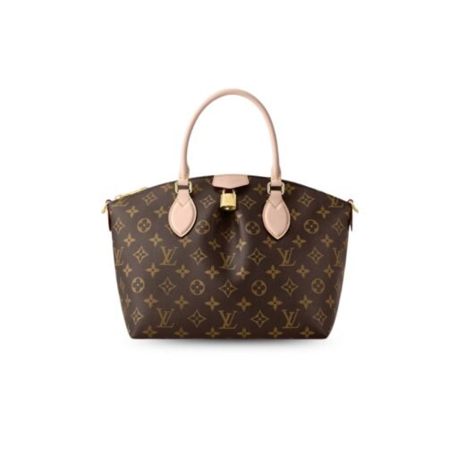 The Boétie PM zipped tote is made from Monogram canvas with natural leather trim and a vivid Bordeaux textile lining. An ideal everyday bag thanks to its supple and body-friendly design, it features a double smartphone pocket as well as an inside flat pocket. It’s finished with a gold-color padlock and an LV-embossed leather patch.