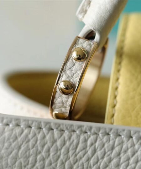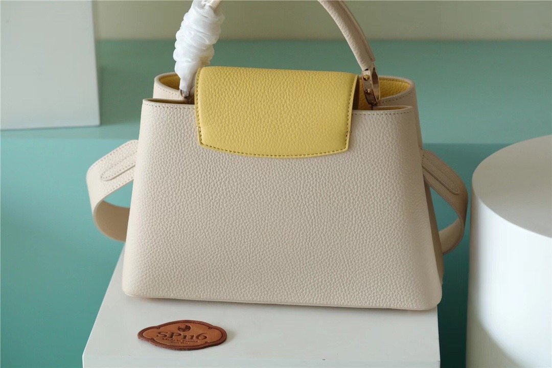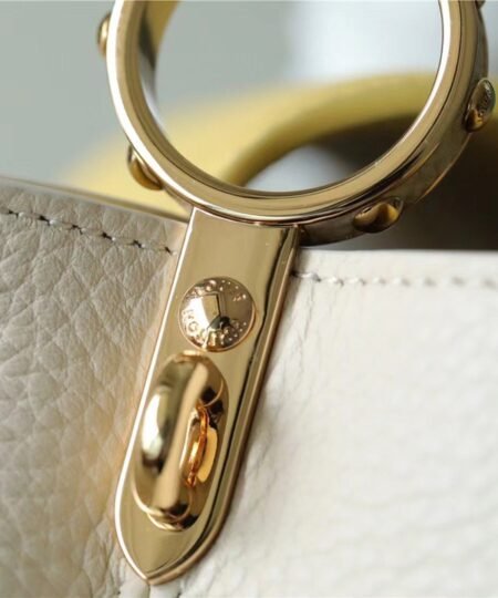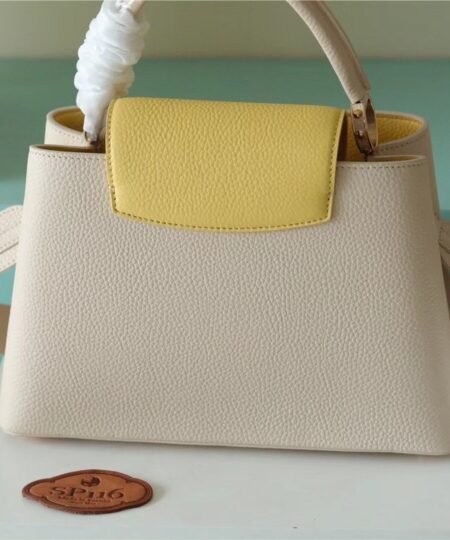Louis Vuitton Capucines MM Taurillon Creme Beige/ Plume Yellow Berlingot For Women, Women’s Bags, Shoulder And Crossbody Bags 12.4in/31.5cm LV M59883