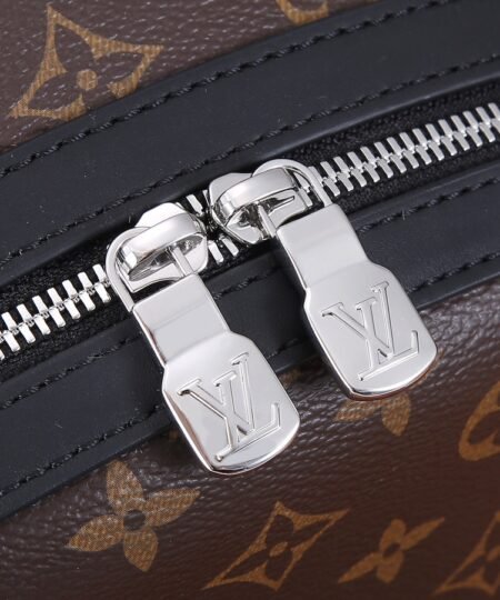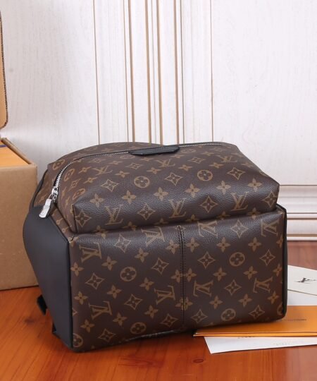 - The pairing of Monogram Macassar canvas with black trim and palladium-color hardware brings classic elegance to the Discovery Backpack’s modern lines. The roomy outside pocket makes it easy to get at essentials. Inside there are three pockets, one designed for an iPad. Adjustable straps and a top handle give carry options