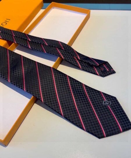 The stylish Ecu tie combines Petit Damier checks with a contrasting narrow stripe in shiny silk. It is finished with the LV initials in a discreet escutcheon.Men tie with pattern