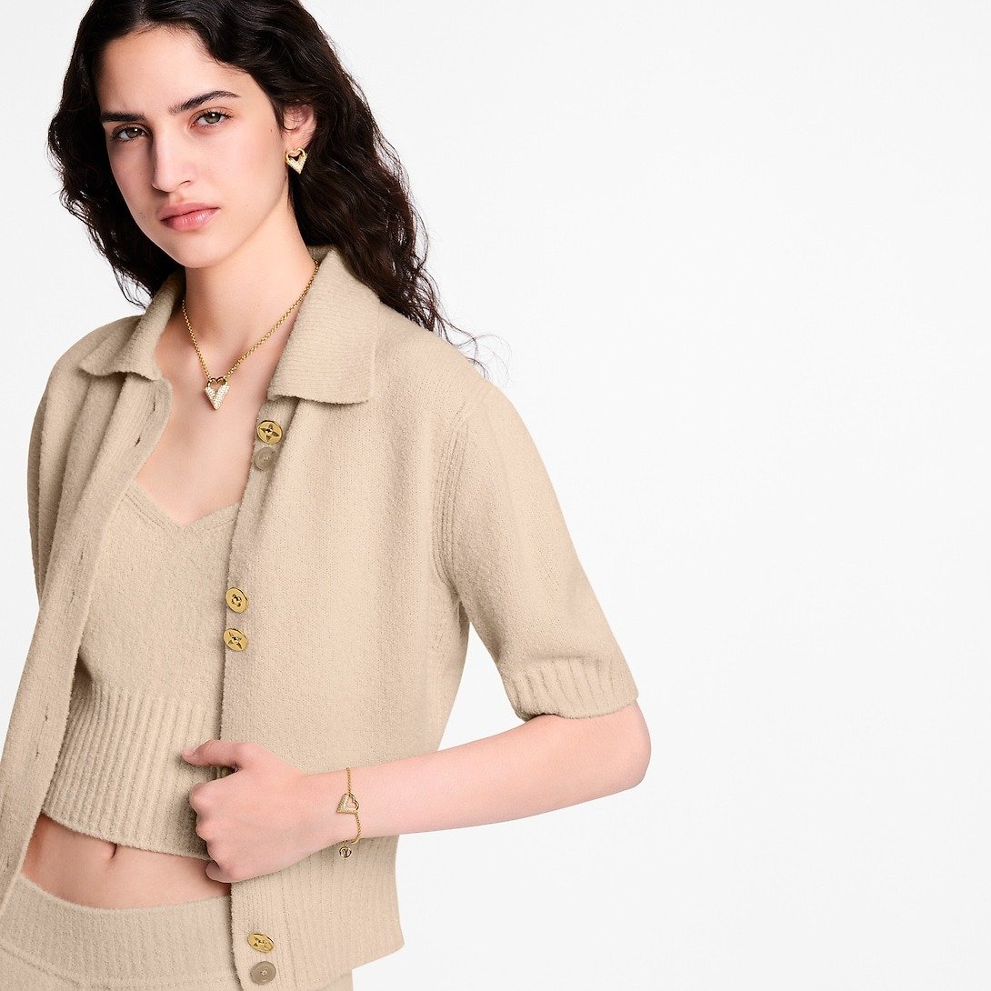 Inspired by the magic of love and affection, the Essential Love earrings combine eye-catching elegance with a subtle Louis Vuitton signature. Their striking design features a heart crafted in gold-toned metal, integrating the House’s distinctive V emblem enlivened with dazzling rhinestones. Easy to wear, these sophisticated earrings add a touch of romantic charm to any look.