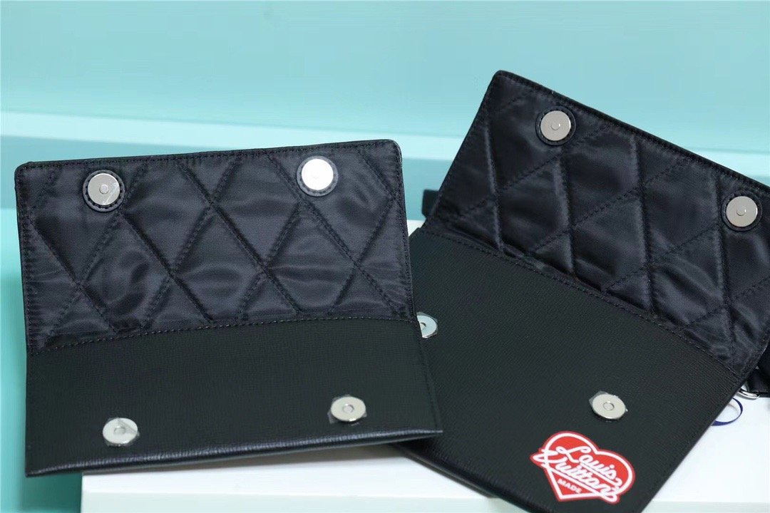 Inspired by the bestselling Trio Messenger, the cool, compact Trio Pouch was created by the Japanese designer Nigo for Pre-Spring 2022. His Monogram Drip look in denim and Taurillon is accented with scarlet hearts for a colorful signature. Three bags in one, it features two removable pouches plus a removable cardholder on the strap ? perfect for contactless payment.