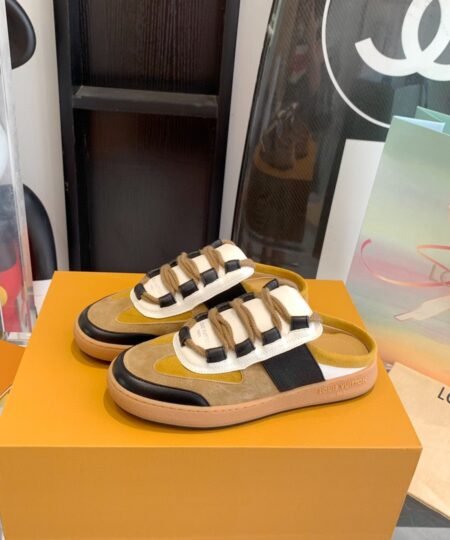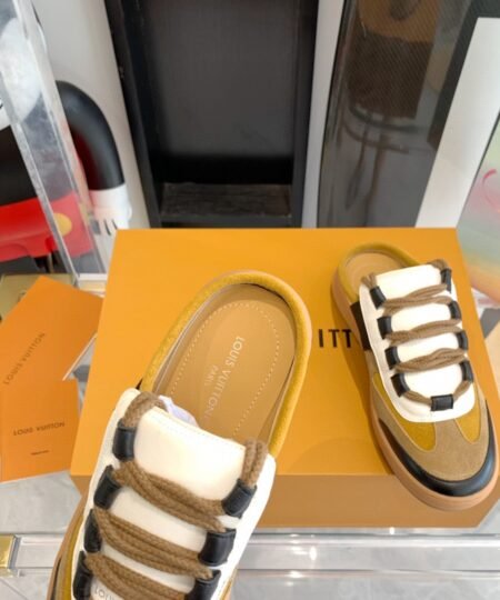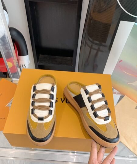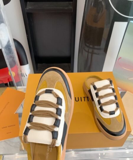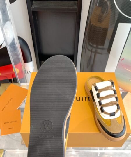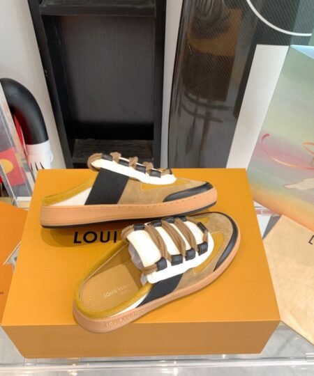 - The Lous open-back sneaker, which was a highlight of Louis Vuitton’s Fall-Winter 2022 show, captures the cool, casual spirit of the collection. Crafted from with details in and Monogram canvas, it features a comfortable padded tongue and double laces in thick cotton. This style is finished with a rubber outsole debossed with the Louis Vuitton signature.