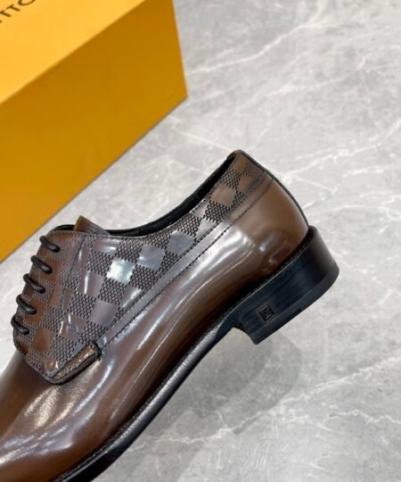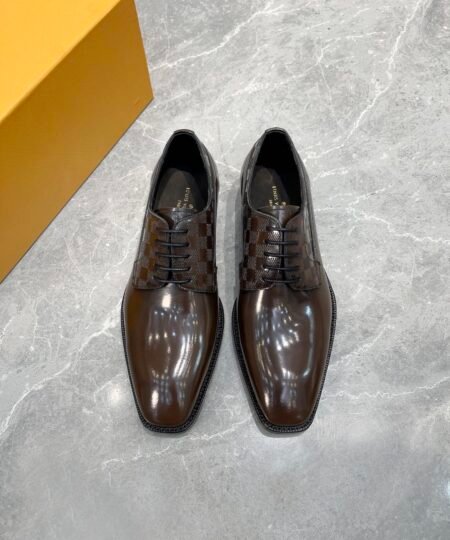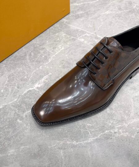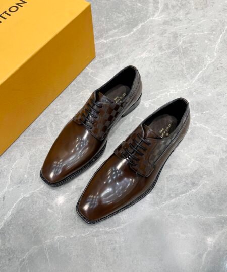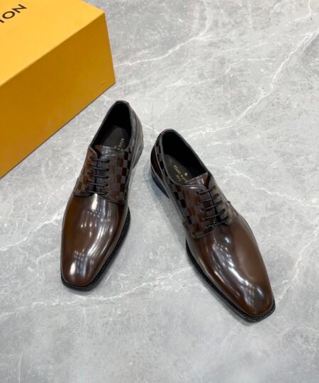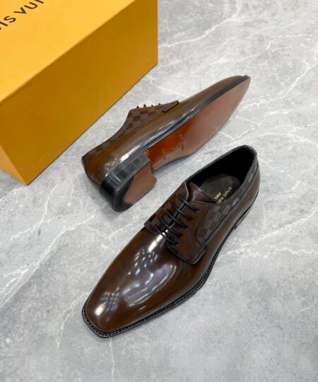 - The Minister derby is crafted from glazed with quarters discreetly printed with Louis Vuitton’s historic Damier pattern. This classic lace-up features a padded insole and a traditional Blake construction for immediate suppleness and comfort. It is finished with a hard-wearing, slip-resistant rubber outsole.