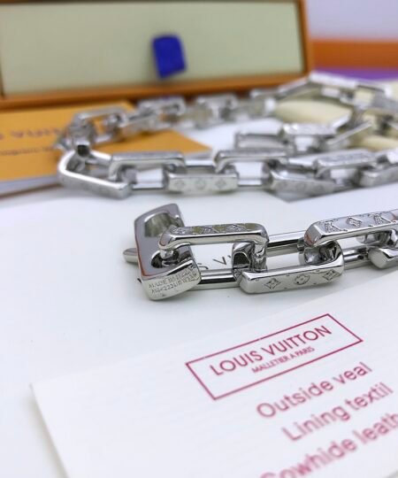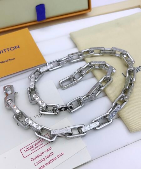 Louis Vuitton Monogram Chain Necklace Silver Tone For Men M00307