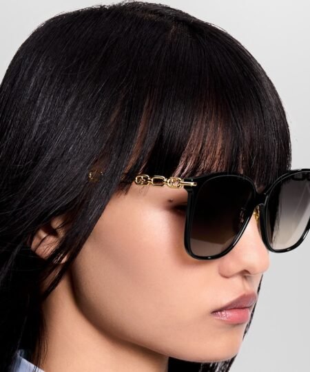The new My LV Chain Two Classique Square Sunglasses for Spring-Summer 2023 combine elegant ultra-thin rims with the House’s iconic chain temples. The gold-finish links are richly detailed with the LV Initials and Monogram Flowers for a sophisticated signature and the metal nose pads ensure a flattering fit for every type of face.
