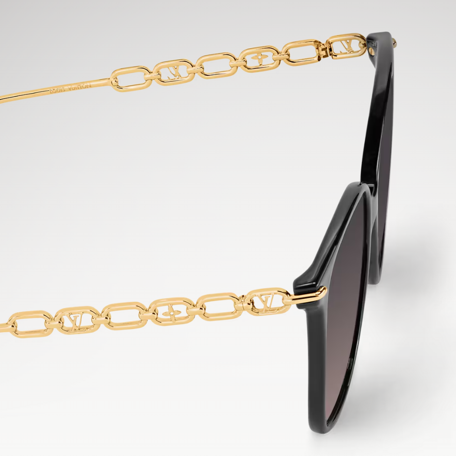 - Signature LV Chain temples with LV Initials and Monogram Flower details