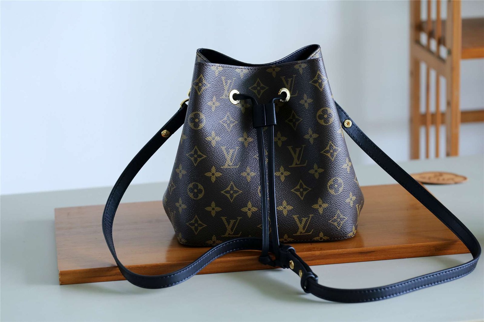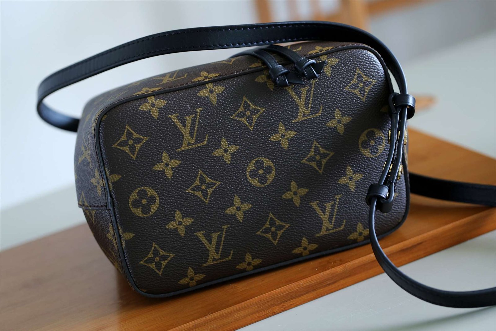 - A true House icon, the N?oNo? bucket bag revisits a 1932 design by Gaston-Louis Vuitton. The original was created to transport bottles of Champagne in style; this modern version in Monogram canvas features a sleek shape, colorful trim and a matching bonded lining. The adjustable smart strap can be slung over the shoulder or lengthened for a trendy cross-body carry.