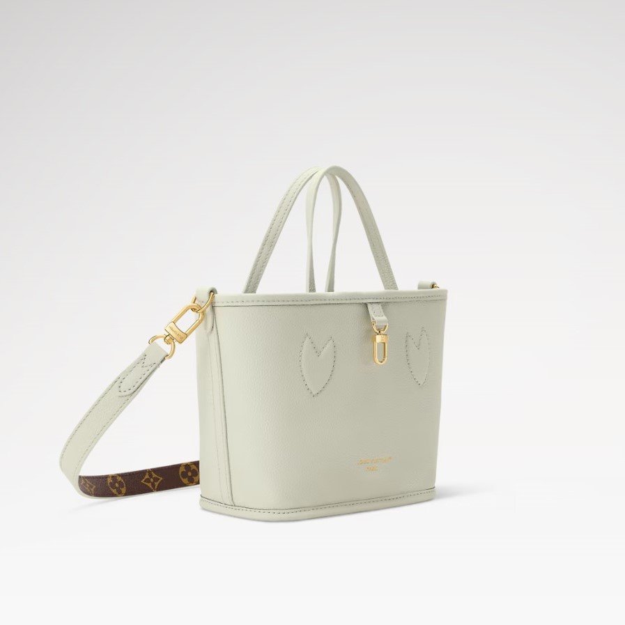 This Neverfull Inside Out BB is reimagined for the season in a delicate pastel shade, adding a pop of color to any look. The reversible design is crafted with playful hearts embroidered on one side. It is adorned with gold-toned hardware for a sophisticated finish and comes with a zipped pouch that can also be used as a separate accessory.