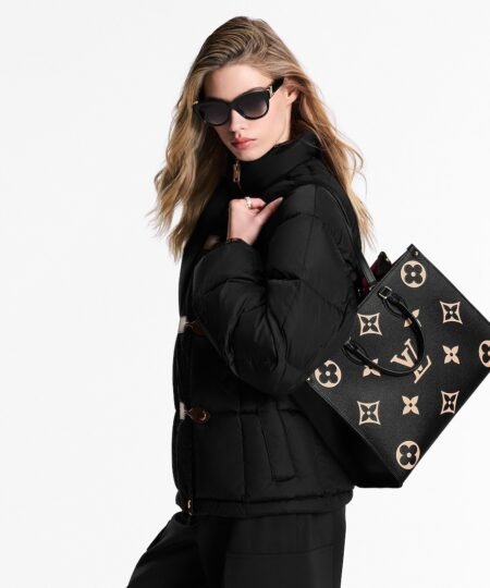 Louis Vuitton OnTheGo MM Tote Bag 13.8in/ 35cm Black/Beige Gold Hardware For Women M45495