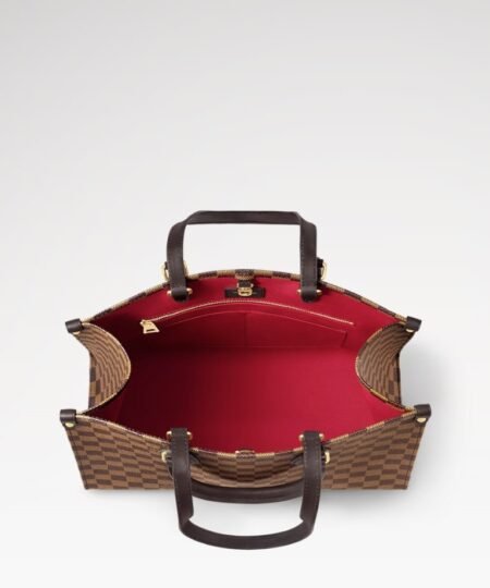 Louis Vuitton OnTheGo MM Tote Bag 13.8in/ 35cm Damier Ebene Gold Hardware For Women N00065