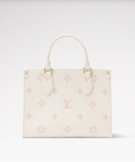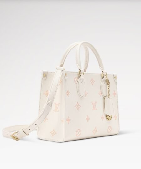 Louis Vuitton OnTheGo PM Tote Bag 9.8in/ 25cm Milky White/ Peach Gold Hardware For Women M28313