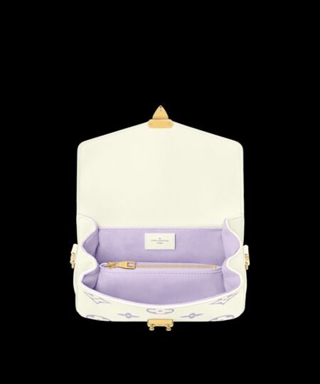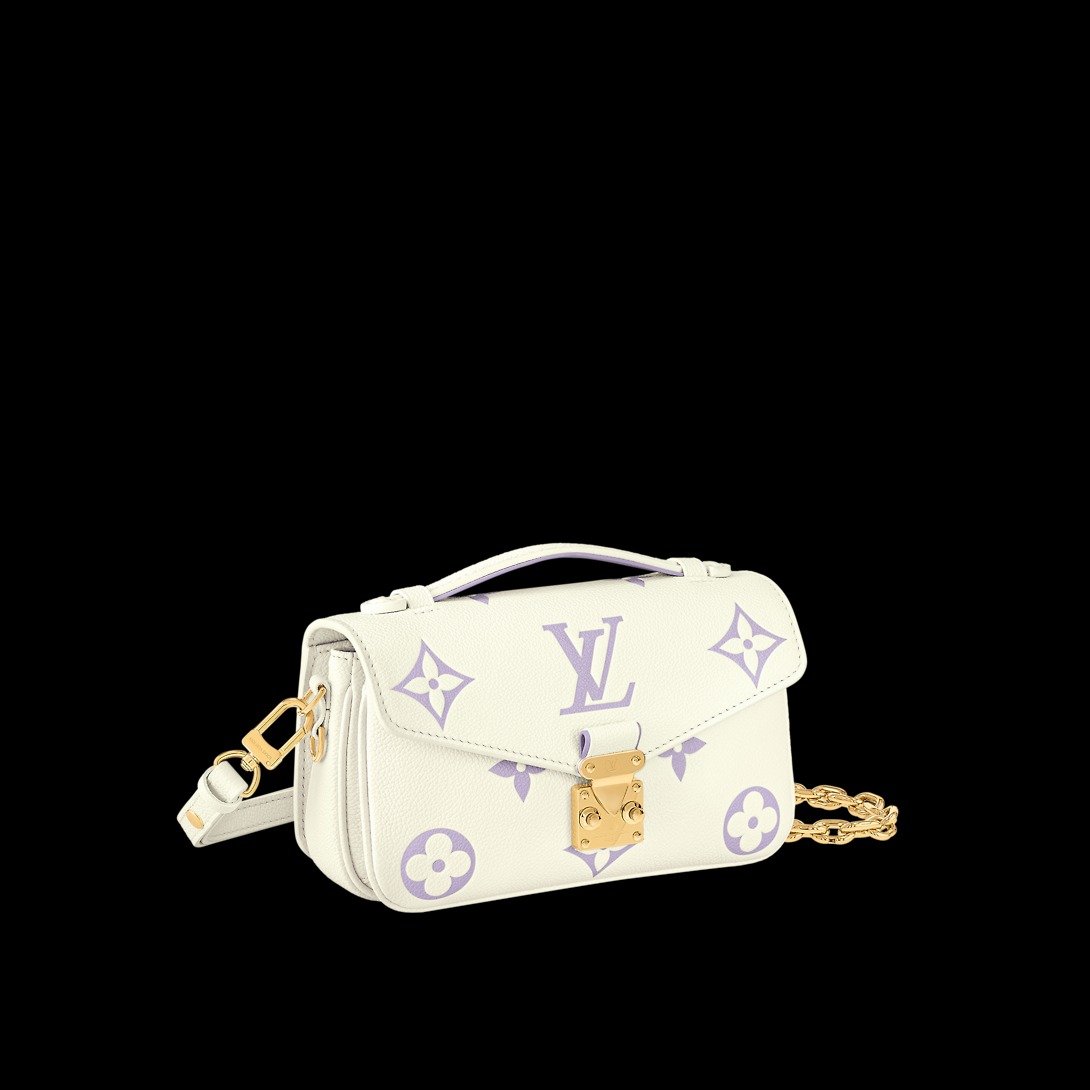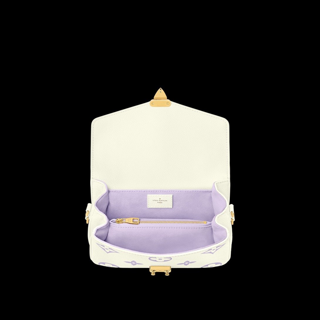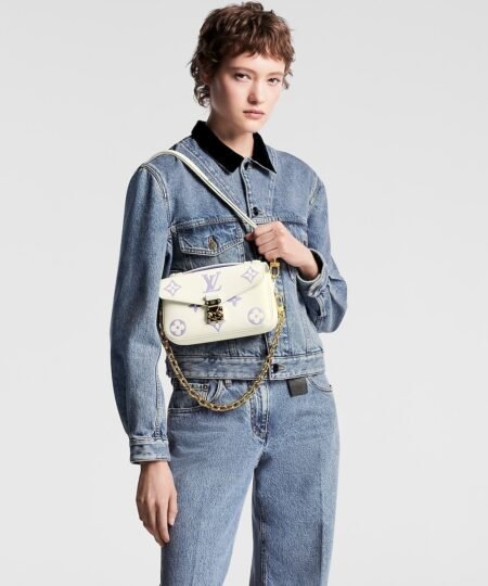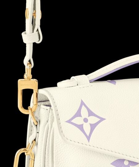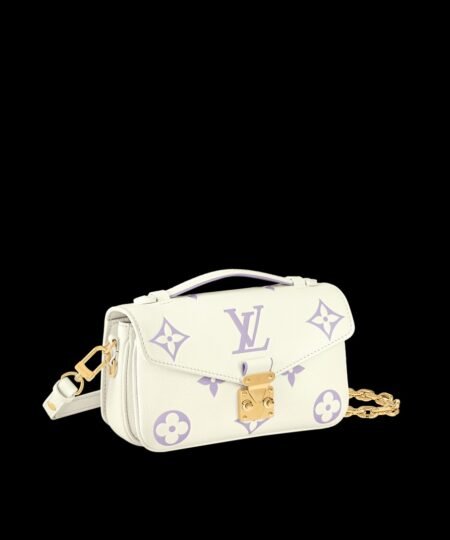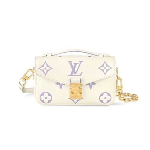 This Pochette M?tis East West handbag features a luminous off-white base with the Monogram motif embossed and then printed on the leather in a muted pastel tone. The Pochette M?tis has a leather handle, a removable chain, and a detachable strap for carry options.