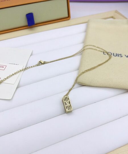 Louis Vuitton Rectangular Pendant Necklace Gold Tone