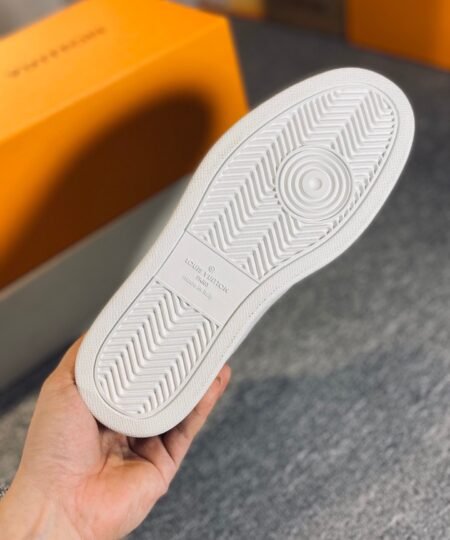 The Rivoli sneaker is reinterpreted in a combination of Eclipse Monogram and Monogram Reverse. This emblematic style is complemented by trim and a white outsole, while the LV Initials are embossed in silver on the tongue. This model features a removable, shape-memory insock for optimum comfort.