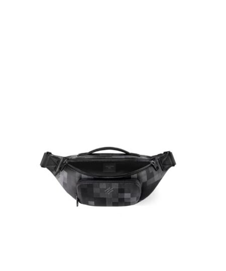 The iconic Damier pattern is subtly pixellated, creating a unique camouflage effect in shades of black. The adjustable strap allows the bumbag to be worn around the waist, on the shoulder or cross-body.