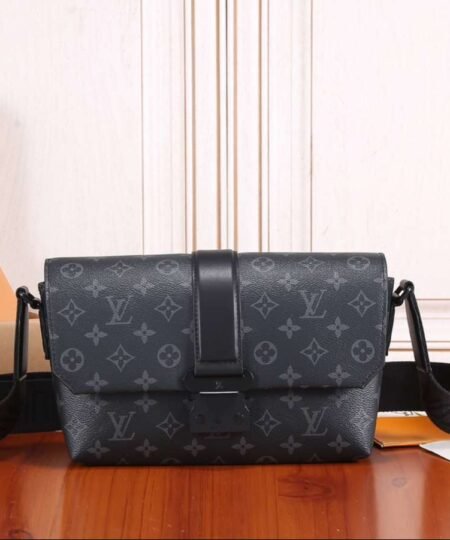 - The S-Cape Messenger is made from Monogram Eclipse canvas, with the Monogram in monochromatic gray-and-black tones inspired by black trunk from the House’s archives. One of its key features is a new version of the S-lock, which not only adds sophistication but also an extra layer of security for belongings