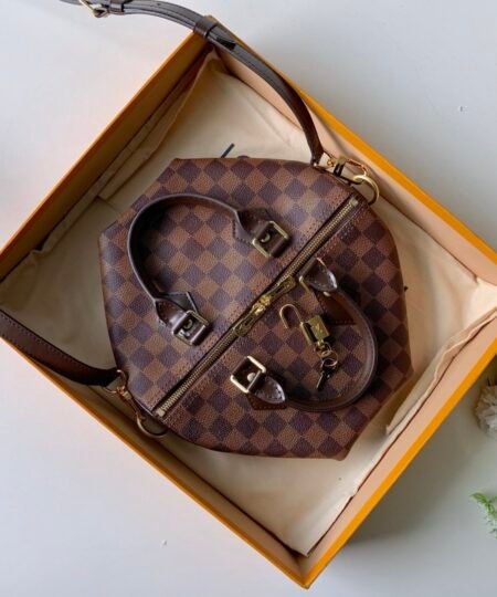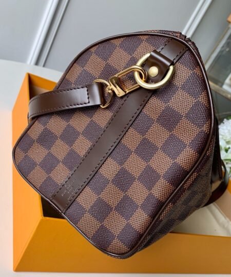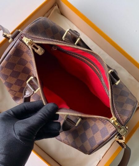 - The Speedy Bandoulière 25 in graphic Damier Ebene canvas is an ideal city bag for every day. Originally created for travelers in the 1930s – the name refers to the era’s rapid transit – every feature of the Speedy’s design is iconic, from its unmistakable shape to the rolled handles, engraved padlock and detachable strap.