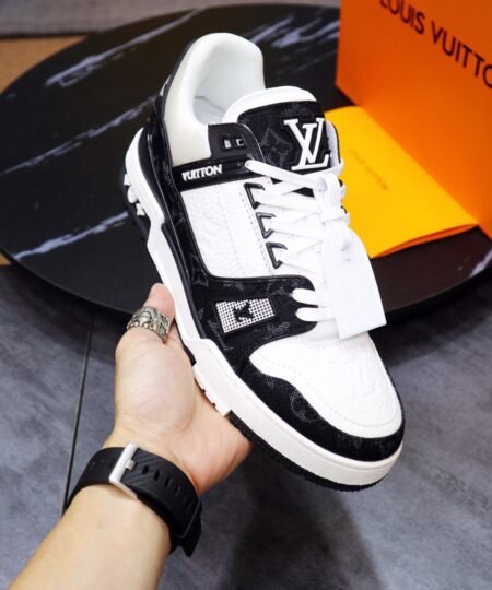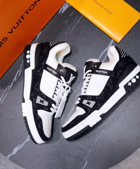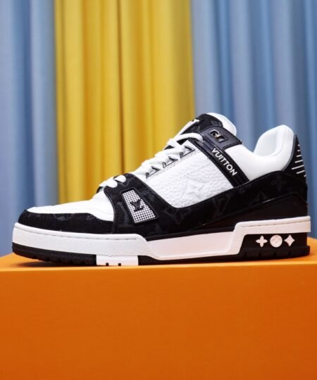 Louis Vuitton Trainer Sneaker Mix Of Materials Black/White For Men LV