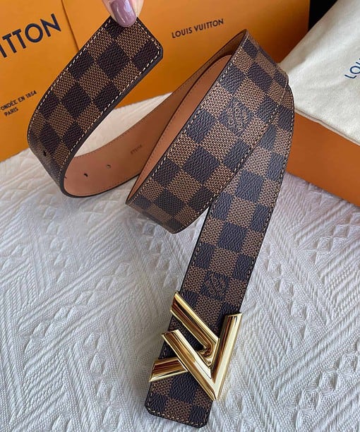 Louis Vuitton Twist Iconic Initiales LV Belt Damier Infini Canvas Brown Gold Finishing LV Women Belt