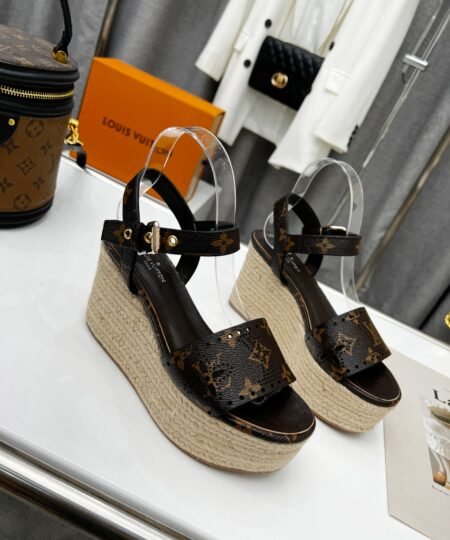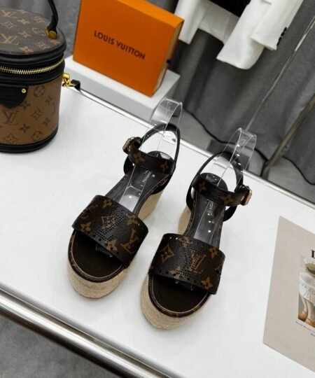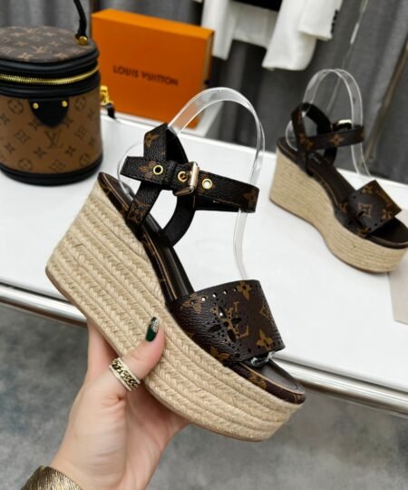 Louis Vuitton Women’s Starboard Wedge Sandal Black And Brown For Women LV