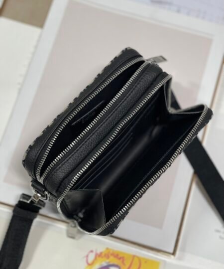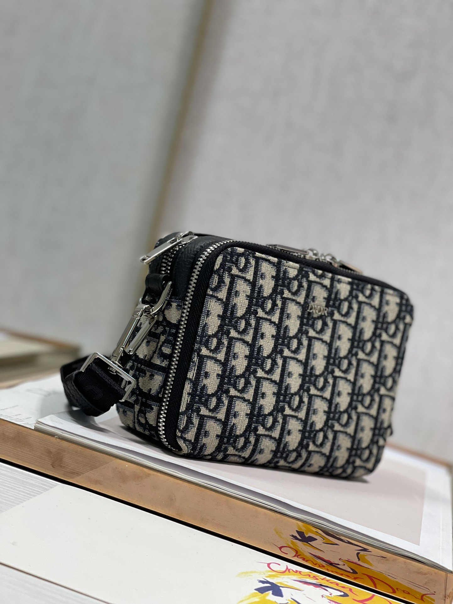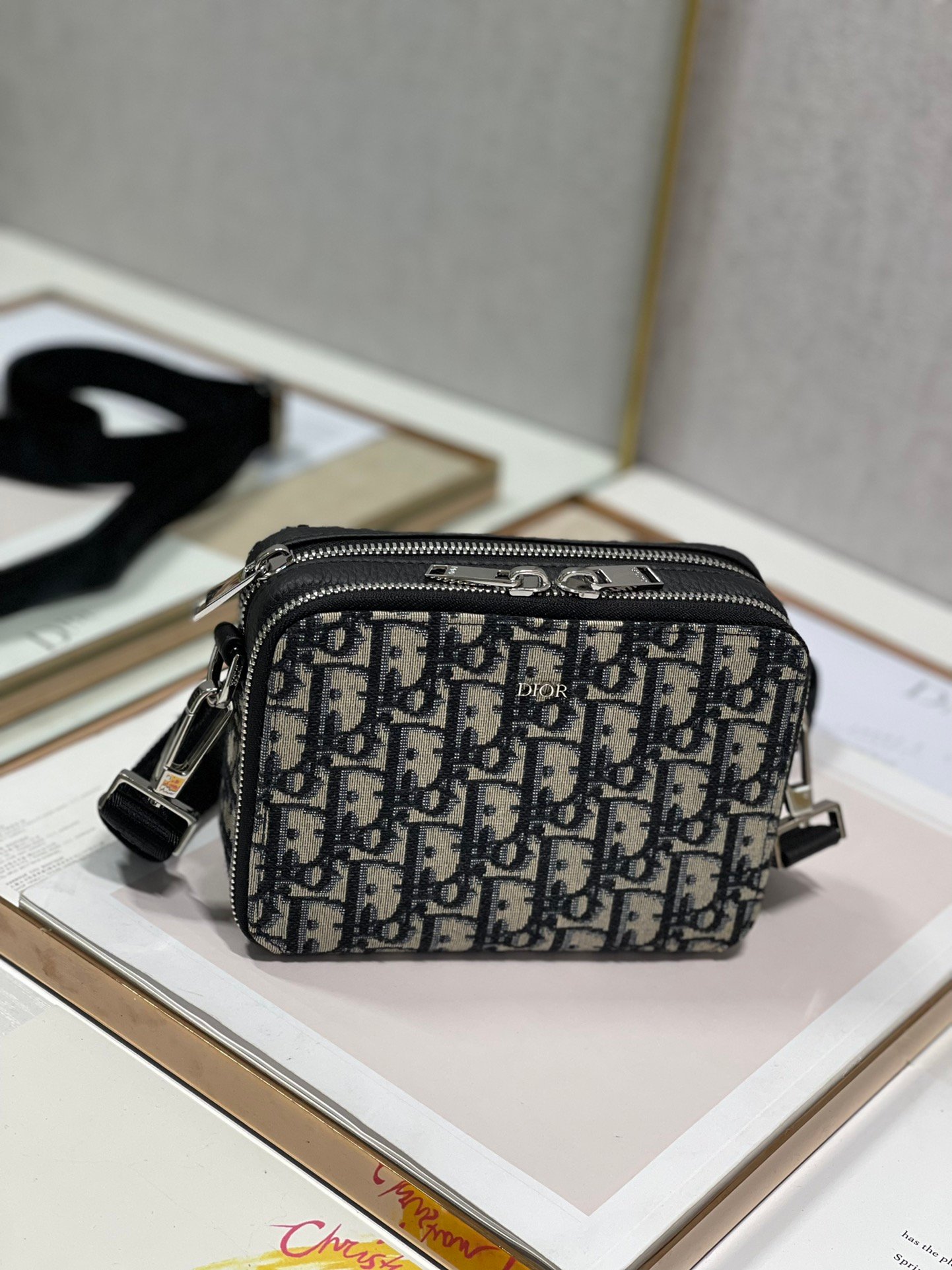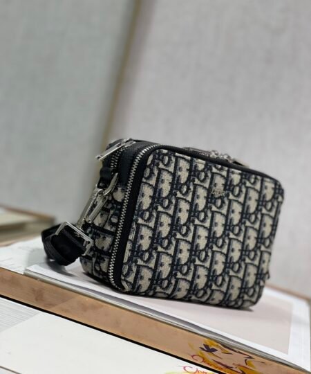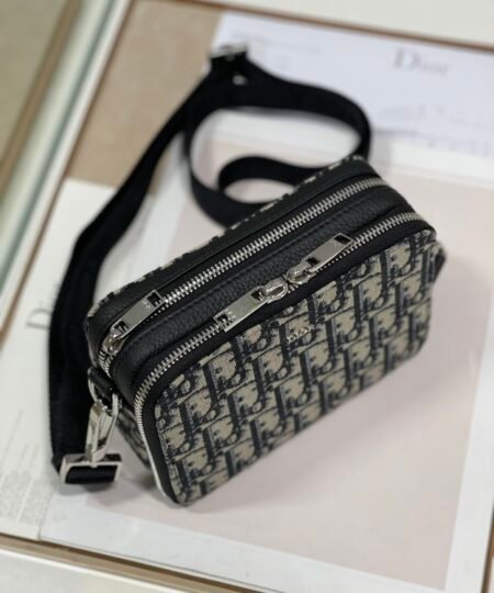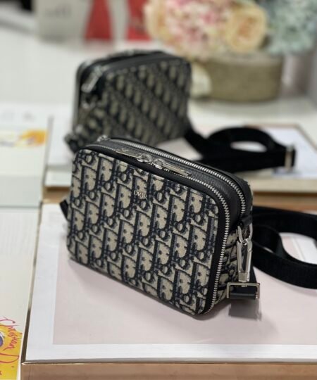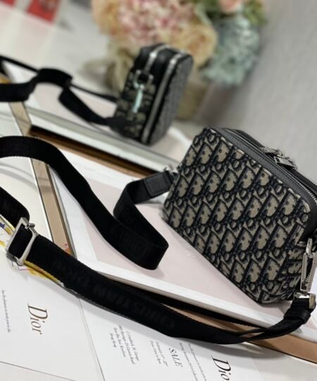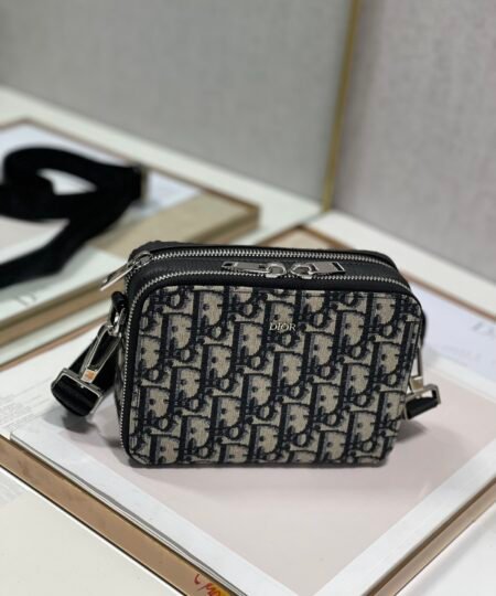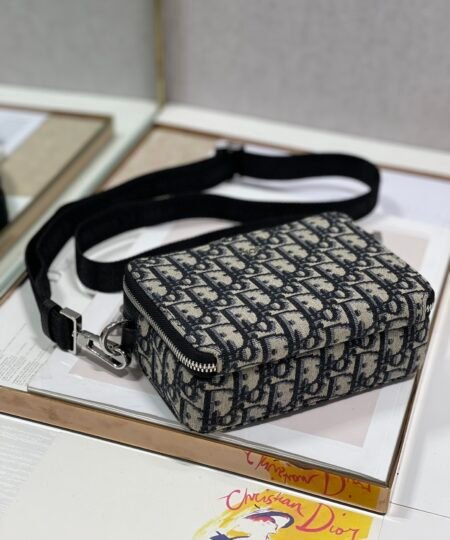 - The pouch pays tribute to the Dior Oblique motif, first showcased on the House’s creations in 1967. Crafted in beige and black jacquard, it features a two-way zipped closure at the top and a front pocket with three card slots. A black adjustable and removable shoulder strap adorned with the ‘Christian Dior’ signature and made with technical fabric jacquard is completed by two ruthenium-finish brass snap hooks. An embossed ‘DIOR’ signature is present on the streamlined and spacious interior with a patch pocket to safely hold your essentials. The pouch is a modern piece that will add a touch of elegance to any outfit.