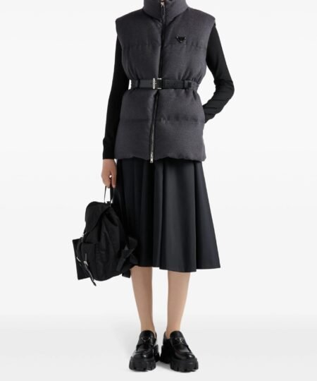 Prada Belted Down Padded Gilet Dark Grey For Women